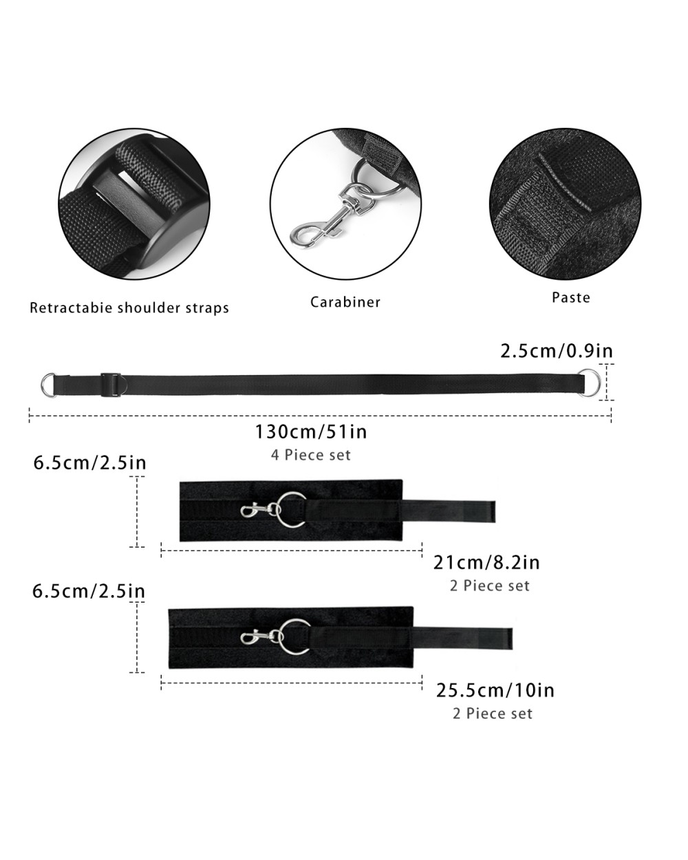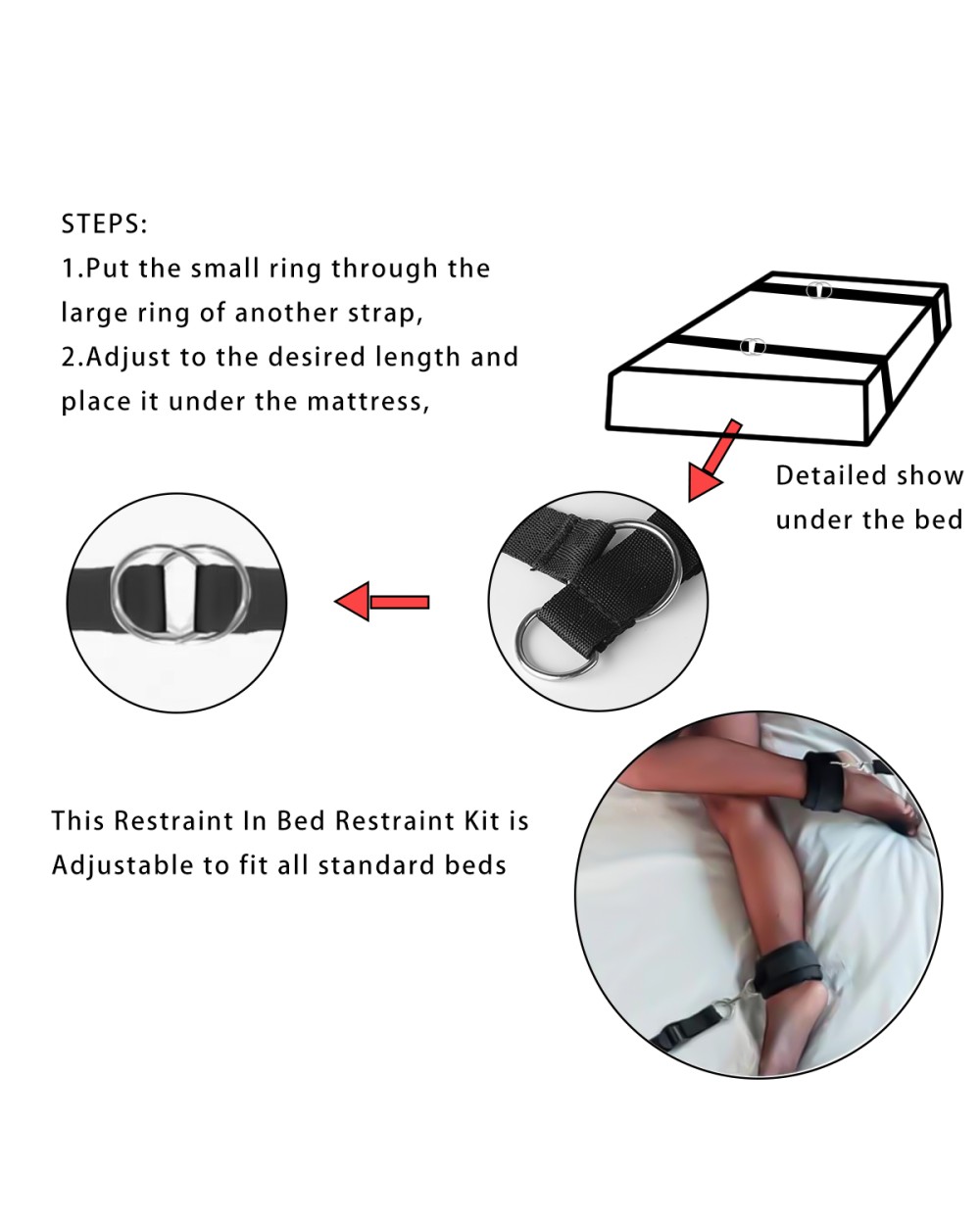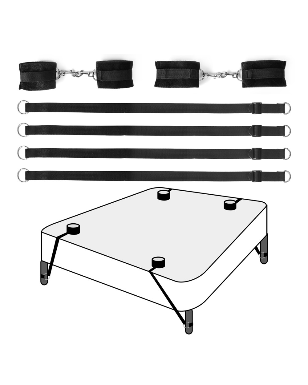 - Komplekts: Komplektā ir viss nepieciešamais savaldīšanas spēlēm gultā.